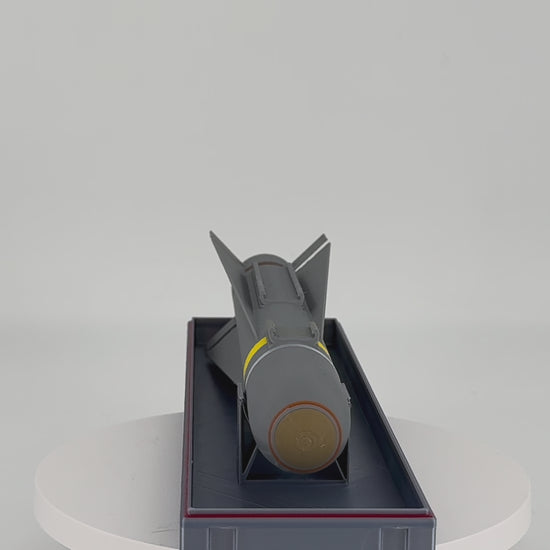 This 9.7-inch, 1:14-scale AGM-65 (Maverick) is a 3D-printed inert replica modeled after the classic air-to-ground missile. Each unit is printed in matte green for a realistic appearance and includes a half-casket display cradle, replicating how the real missile is transported and stored.